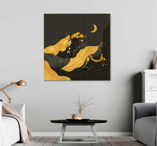 Square Canvas Gold & Black Vector Moon High Quality Print 100% Australian Made
