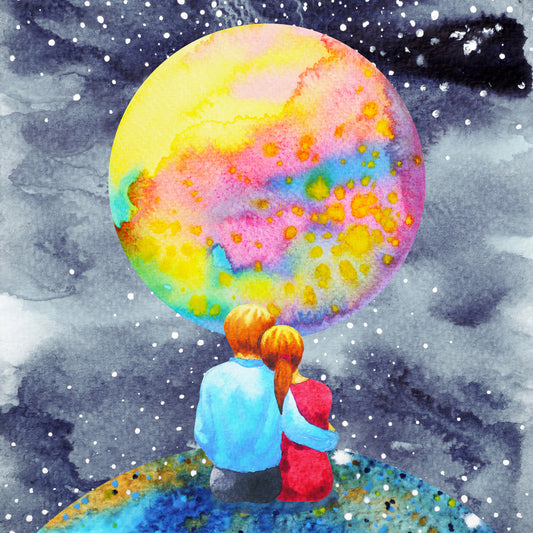 Square Canvas Couple & Planet Colorful Painting High Quality Print 100% Australian Made