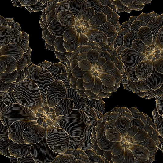 Square Canvas Gold Black Floral Design High Quality Print 100% Australian Made