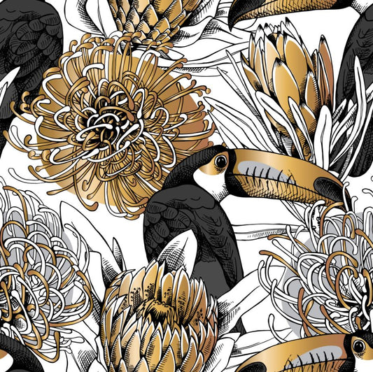 Square Canvas Toucan Bird with Gold & Silver Design High Quality Print 100% Australian Made