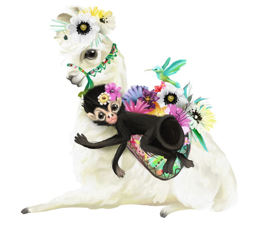 Square Canvas Llama with Monkey on Back Painting High Quality Print 100% Australian Made