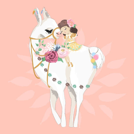 Square Canvas Llama & Cute Girl Painting High Quality Print 100% Australian Made