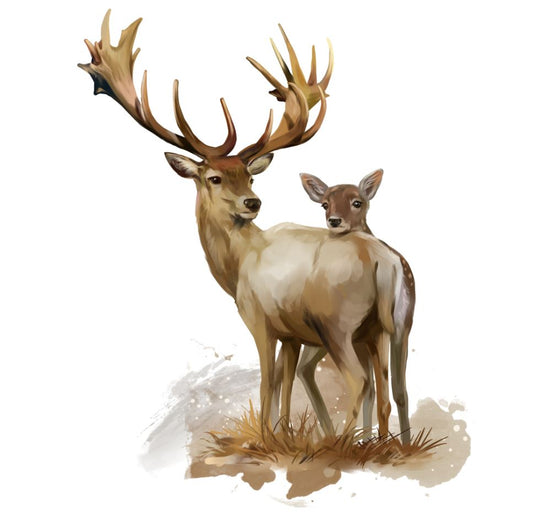 Square Canvas Deer Couple Painting High Quality Print 100% Australian Made
