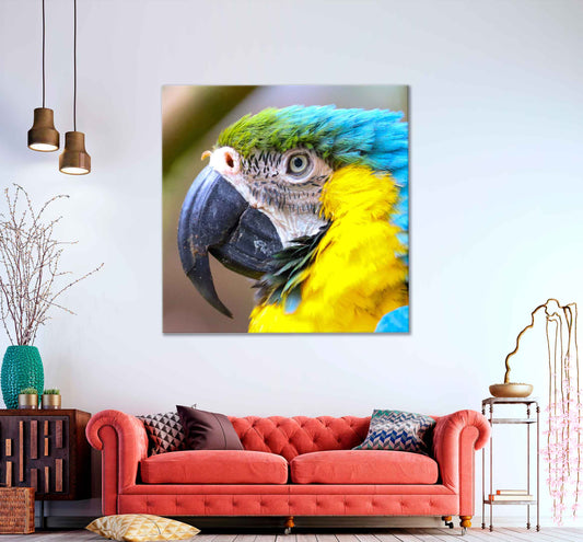 Square Canvas Macaw Bird Closeup Side View Photograph High Quality Print 100% Australian Made