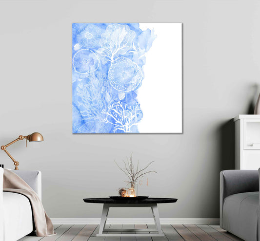 Square Canvas Leaves & Flower Blue Abstract Design High Quality Print 100% Australian Made