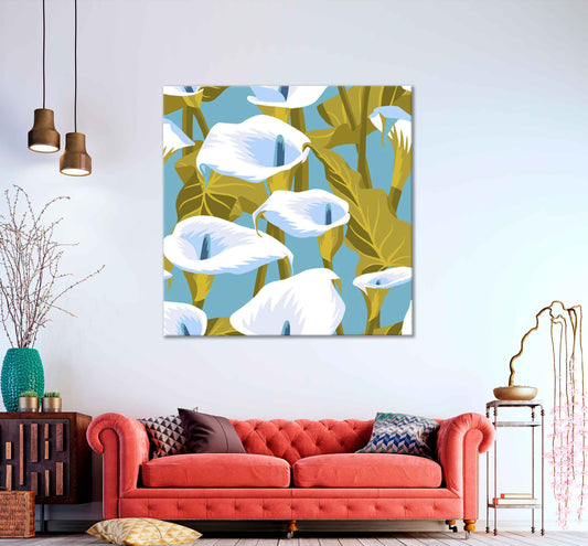 Square Canvas White Lily Flowers Vector Design High Quality Print 100% Australian Made