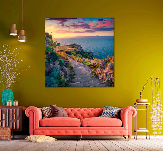 Square Canvas Footpath & Sea Sunset Scenery High Quality Print 100% Australian Made