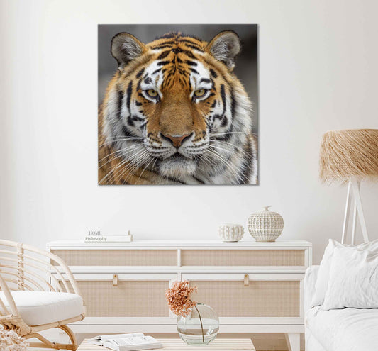 Square Canvas Tiger Face Closeup View Photograph High Quality Print 100% Australian Made