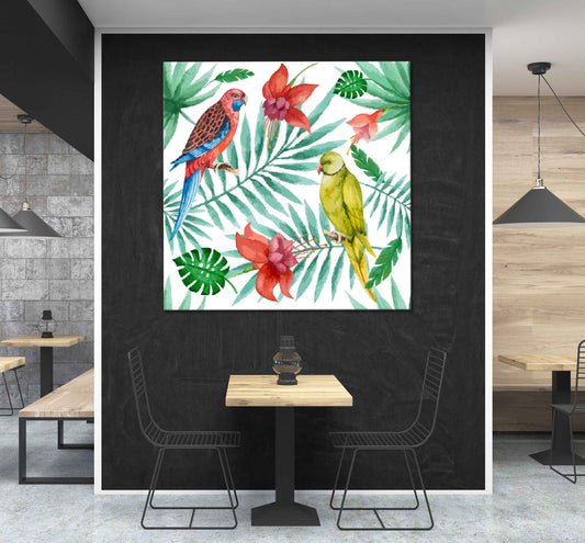Square Canvas Parrot on Leaves Flowers Art High Quality Print 100% Australian Made