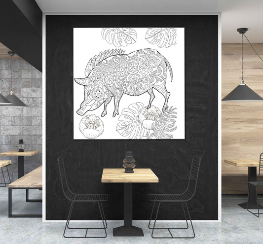 Square Canvas Pig with Leaves B&W Vector Design High Quality Print 100% Australian Made