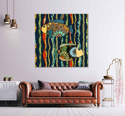Square Canvas Doodle Zentangle Fish Vector Design High Quality Print 100% Australian Made