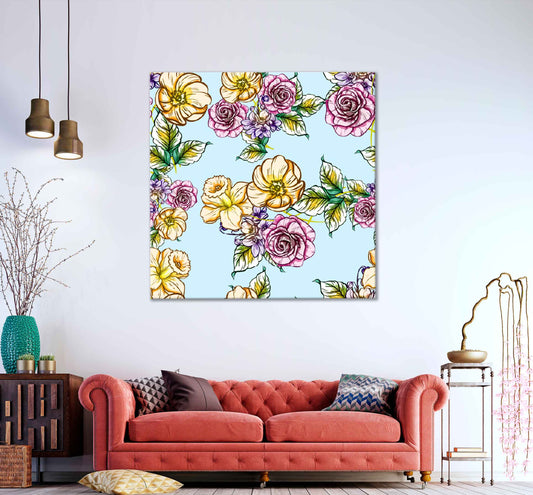Square Canvas Yellow Pink Roses Vector Art High Quality Print 100% Australian Made