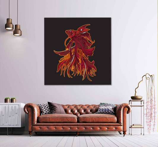 Square Canvas Fish with Colorful Leaves Art High Quality Print 100% Australian Made