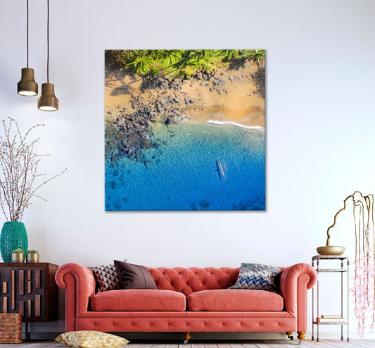 Square Canvas Blue Beach with Stone Aerial View Photograph High Quality Print 100% Australian Made