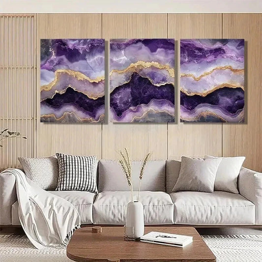 3pcs Elegant Purple Agate Luxurious Perfect Wall Art Set Canvas Framed 50x70cm - High Quality Print 100% Australian Made Wall Canvas Ready to Hang