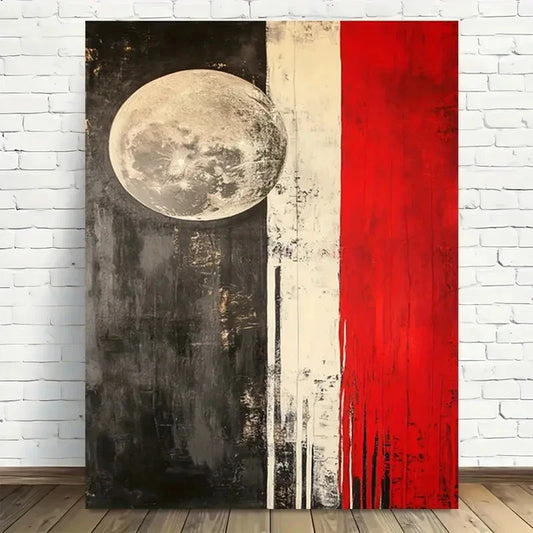 Beautiful Black & Red Stripes & Full Moon Painting 40x60cm Metal Print Ready to Hang