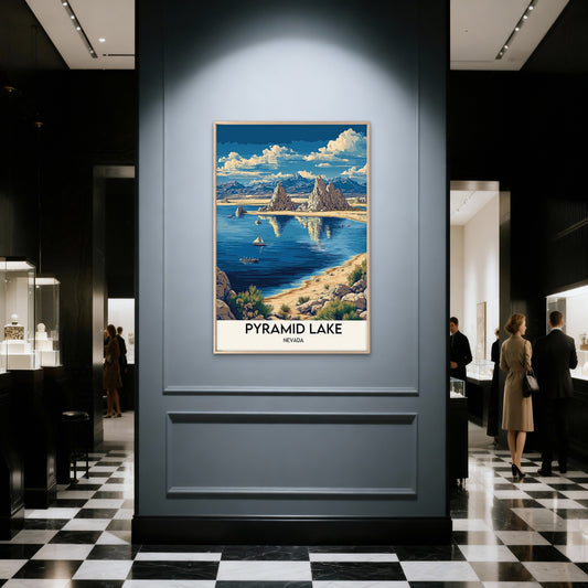 Pyramid Lake Nevada Waters & Sailboats Vintage Travel Poster Print Wall Art