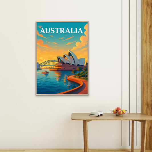 Australia Sydney Opera House and Harbour Bridge Scenery Travel Poster Print Wall Art