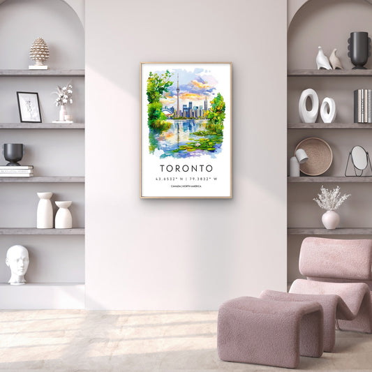 Watercolor Painting of Toronto Skyline Travel Poster Print Wall Art