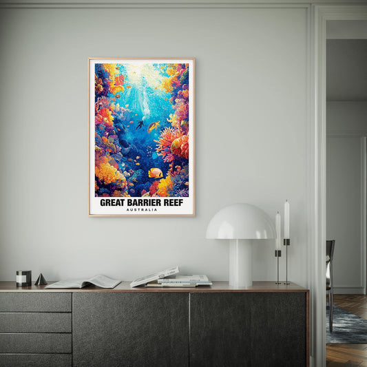 View of Australia'S Great Barrier Reef Travel Poster Print Wall Art