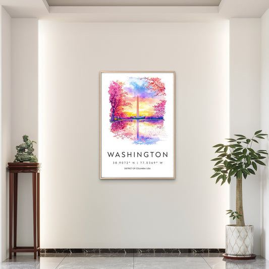 Cherry Blossoms At Washington Monument Travel Poster Print Wall Art