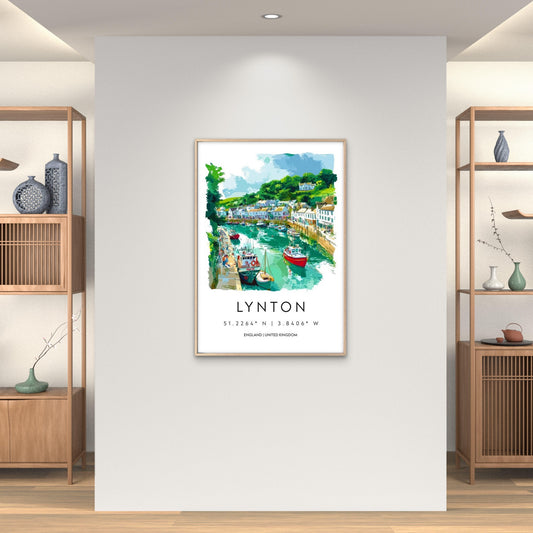 Lynton Harbor Scene In England Travel Poster Print Wall Art