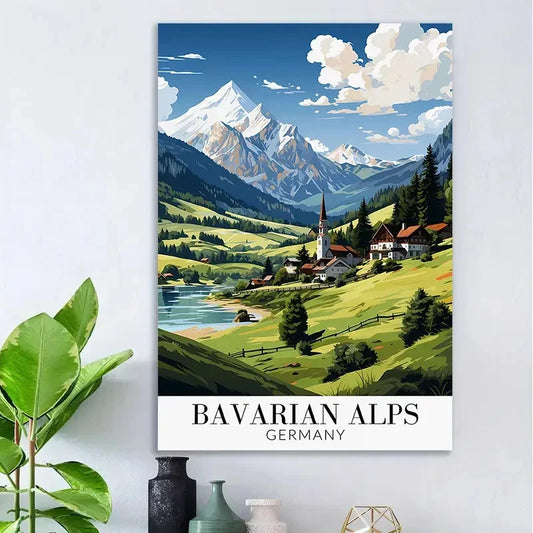 Bavarian Alps Germany Vintage Snow-Capped Travel Poster Print Wall Art