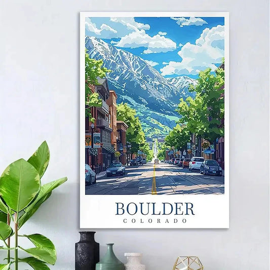 Boulder Colorado Vintage Cityscape Travel Poster Print Wall Art
