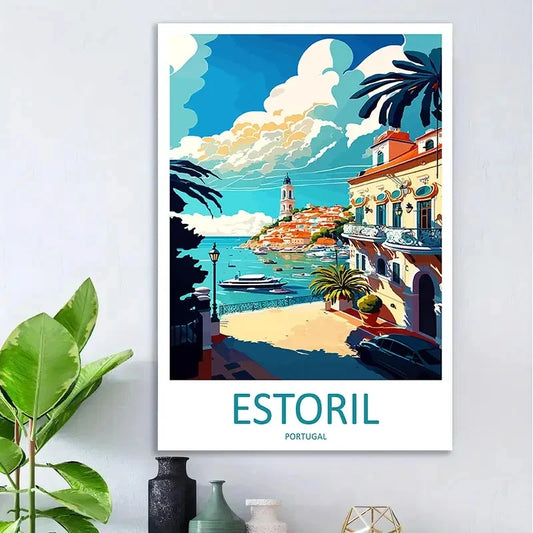 Estoril Portugal Coastal Portuguese Vintage Travel Poster Print Wall Art