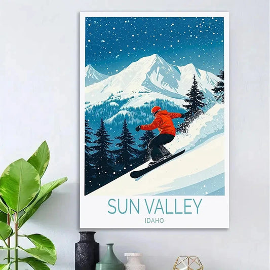 Vintage Sun Valley Idaho Resort Winter Landscape Travel Poster Print Wall Art