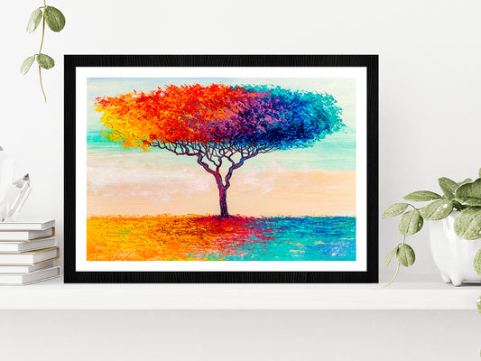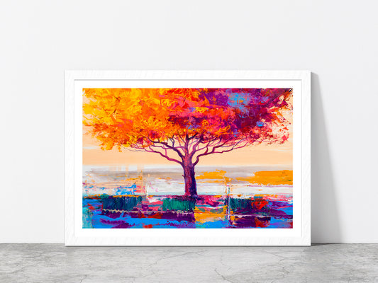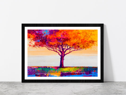 Abstract Colorful Autumn Tree Glass Framed Wall Art, Ready to Hang Quality Print