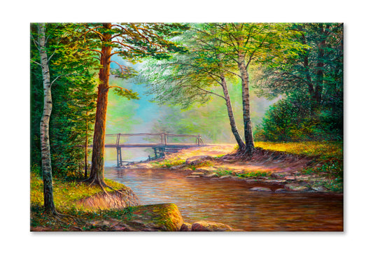 Forest River Bridge View Oil Painting Wall Art Limited Edition High Quality Print