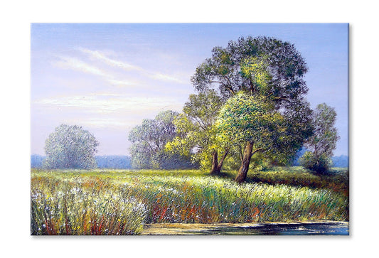 Green Grass Field & Trees Oil Painting Wall Art Limited Edition High Quality Print