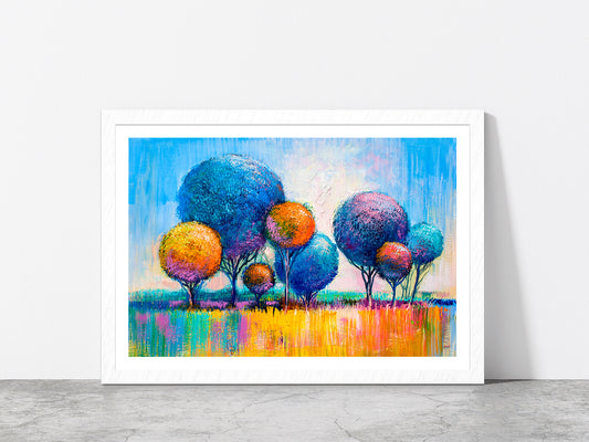 Multicolor Trees Glass Framed Wall Art, Ready to Hang Quality Print