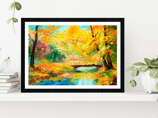 Colorful Autumn Forest With River Glass Framed Wall Art, Ready to Hang Quality Print