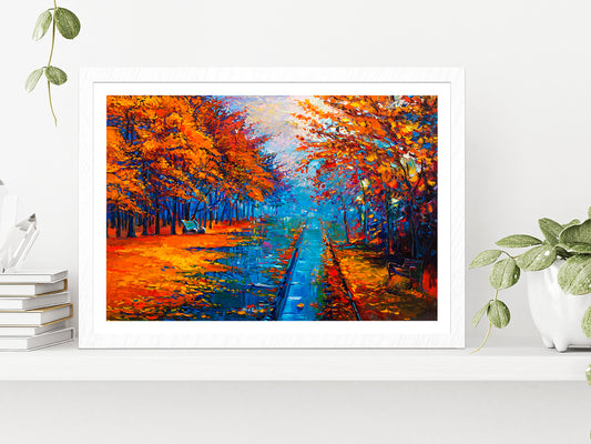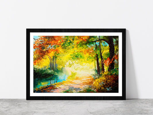 Autumn Trees With Forest Road Glass Framed Wall Art, Ready to Hang Quality Print
