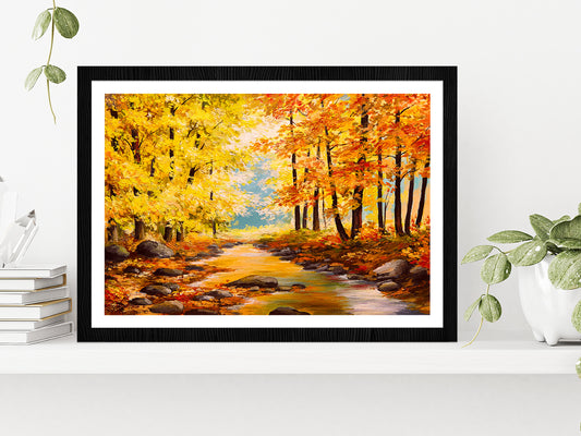 Autumn Trees In Forest With River Glass Framed Wall Art, Ready to Hang Quality Print
