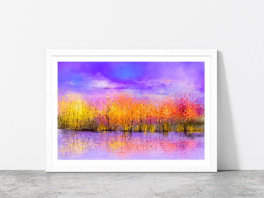 Colorful Autumn Forest, Trees With Yellow, Red Leaf & Lake Glass Framed Wall Art, Ready to Hang Quality Print