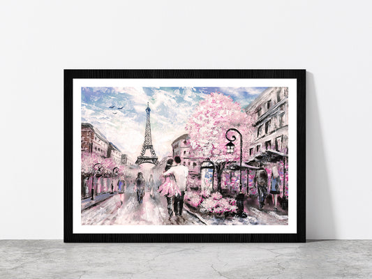 Street View Of Paris With Eiffel Tower Glass Framed Wall Art, Ready to Hang Quality Print
