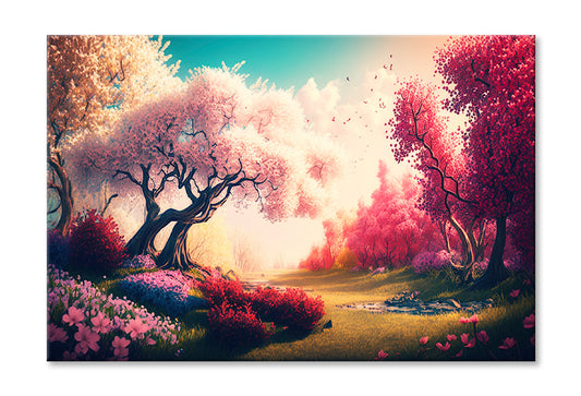 Colorful Blooming Trees Landscape Painting Wall Art Limited Edition High Quality Print