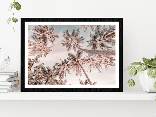 Palm Trees Below View Sunset Sky Faded Photograph Glass Framed Wall Art, Ready to Hang Quality Print