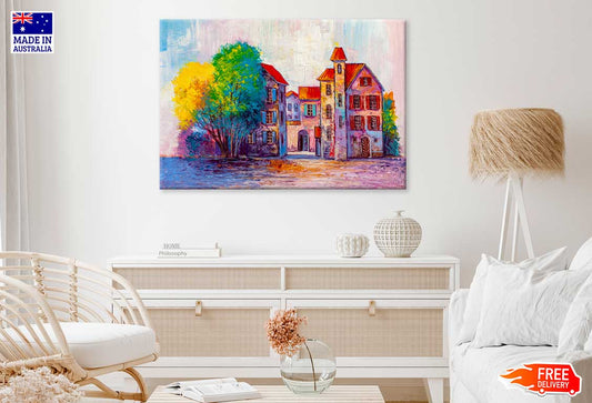 Colorful Trees near Buildings Painting Print 100% Australian Made
