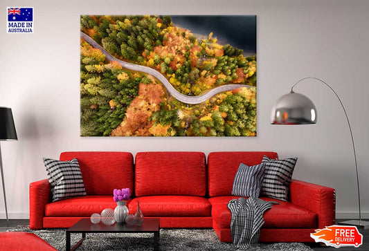 Autumn Forest Covered Road Aerial View Photograph Print 100% Australian Made