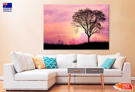Silhouette Tree & Grass Pink Sky Scenery View Print 100% Australian Made