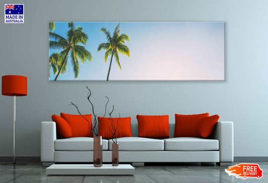Panoramic Canvas Palm Trees & Blue Sky View Photographin High Quality 100% Australian Made Wall Canvas Print Ready to Hang