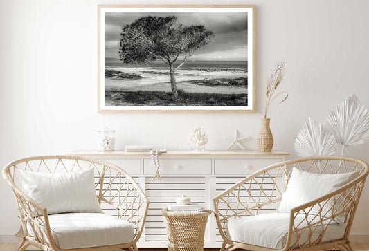 Alone Tree near Seashore B&W View Photograph Home Decor Premium Quality Poster Print Choose Your Sizes