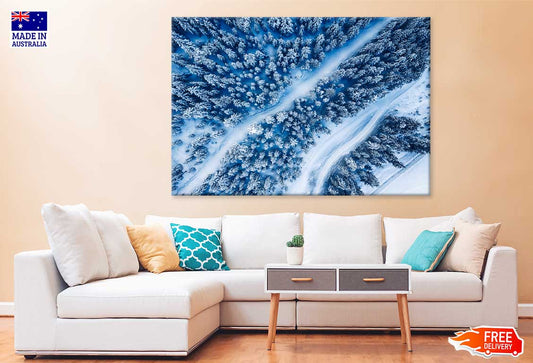 Aerial Trees & Snow Winter Forest Photograph Print 100% Australian Made