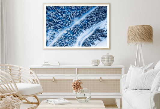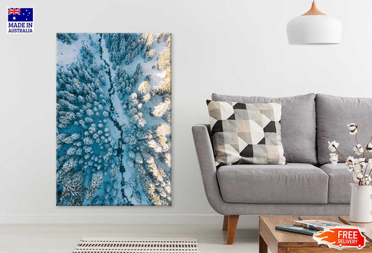 Snow Forest Trees & River Aerial Photograph Print 100% Australian Made