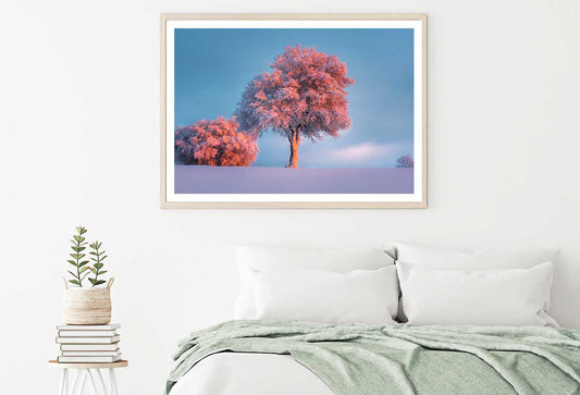 Snow Trees on Pink Sunset Scenery View Photograph Home Decor Premium Quality Poster Print Choose Your Sizes