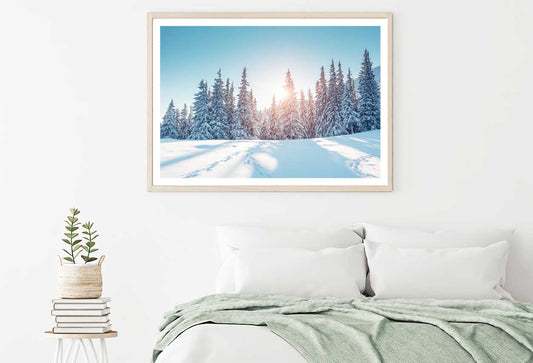 Snow Trees Forest with Sunrise View Photograph Home Decor Premium Quality Poster Print Choose Your Sizes